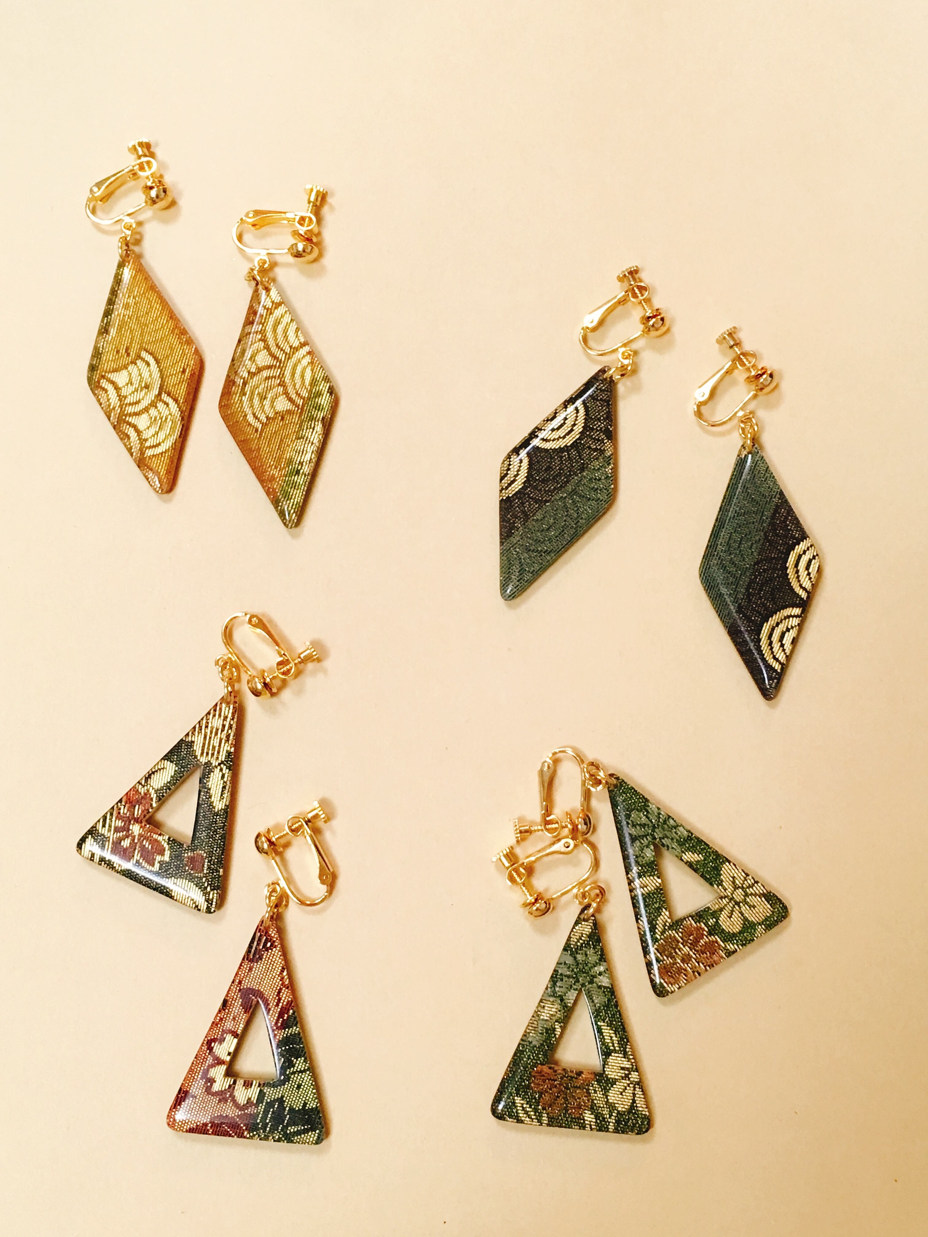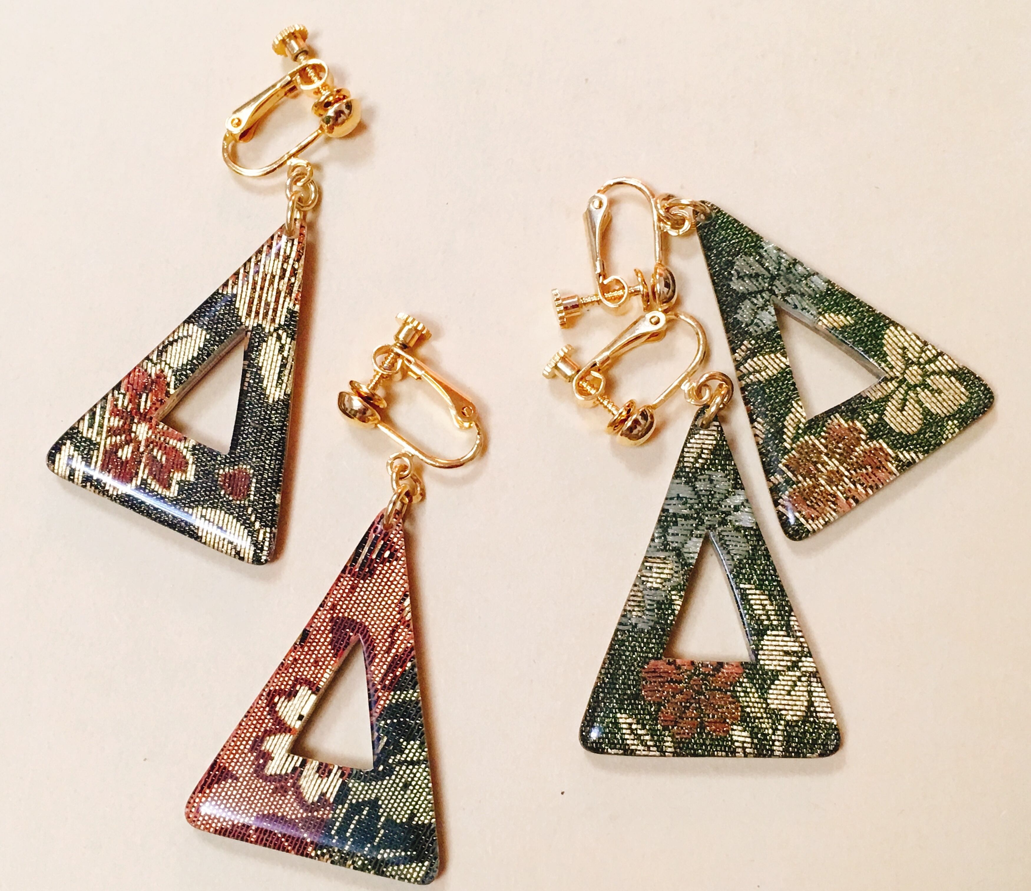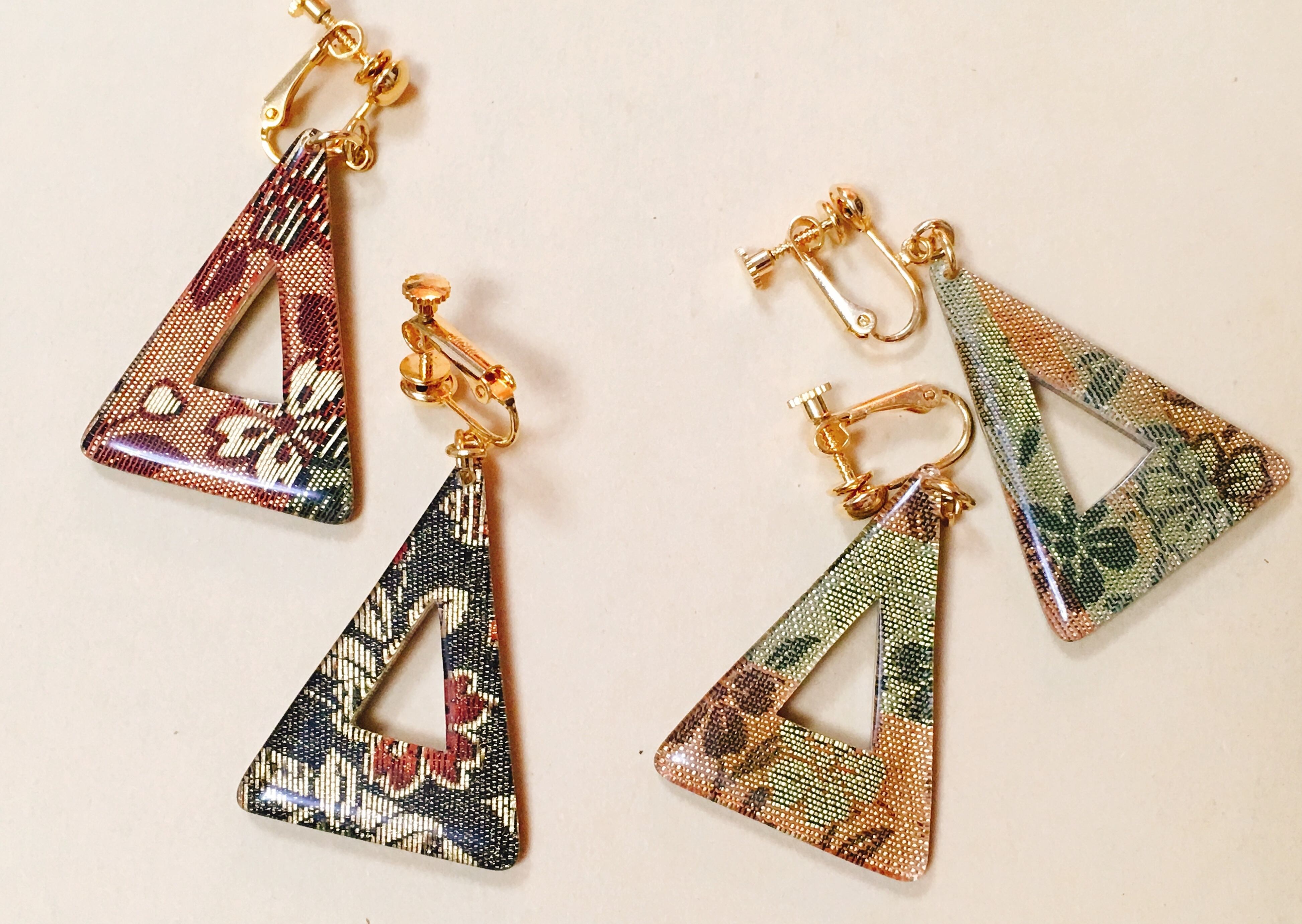 和柄の布を閉じ込めたイヤリング。